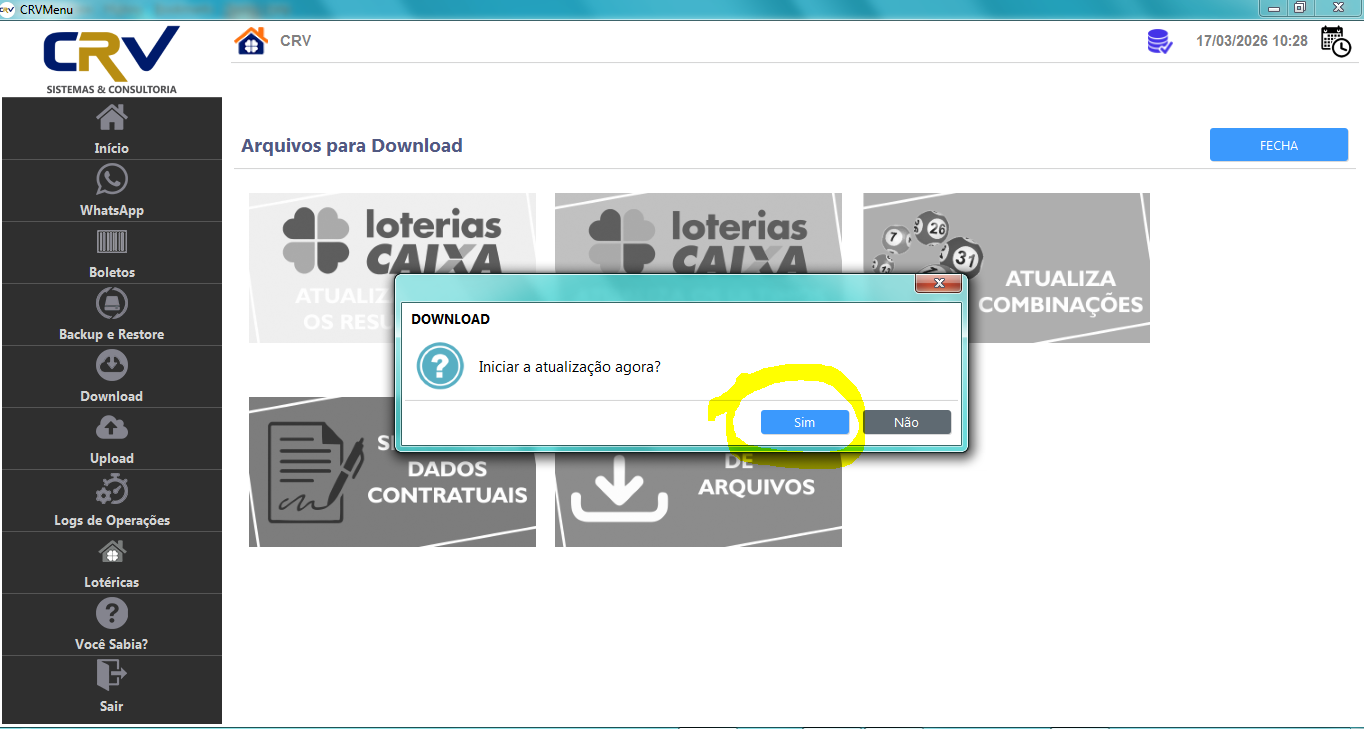 Para atualizar os resultados do seu sistema CRV, acesse: